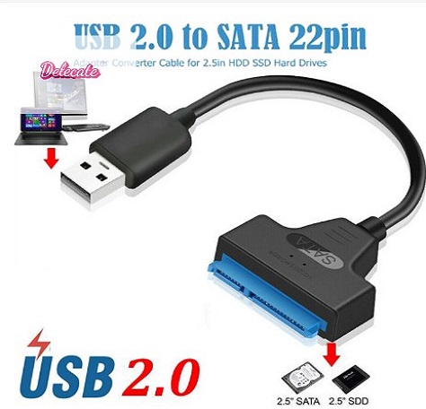 Cáp chuyển đổi USB 2.0 sang SATA 22 Pin cho ổ cứng 2.5 này được sử dụng để kết nối ổ cứng 2.5 SATA vào máy tính để trao đổi dữ liệu mà không cần phải tháo vỏ máy.